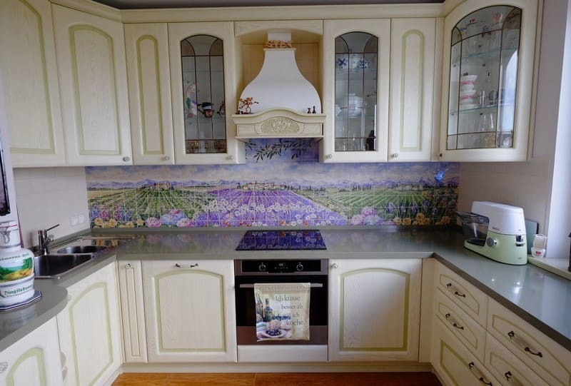 Выбрать из большого ассортимента образцы кухонных фасадов, корпусных деталей, столешниц, фартуков, смесителей, ручек (при необходимости);